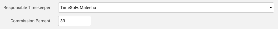 Commissions for Responsibly Attorneys can be set under the Matter details: Clients>Clients & Matters>[Matter name] – under the ‘General’ tab there is a field to specify the ‘Responsible Timekeeper’. Once you select the Responsible Timekeeper, you will see a new field appear allowing you to define the commission amount.