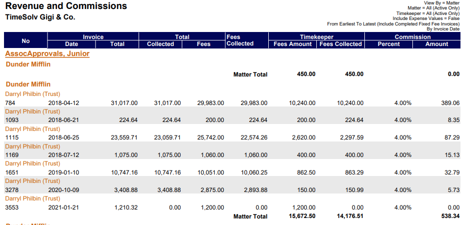 Users with access to reports will also be able to see the commissions for each Originating Attorney at the reporting level. The reports that currently run Originating Attorneys are: