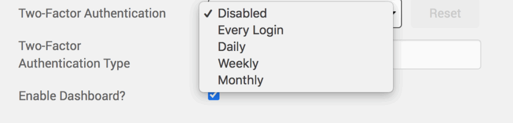 Specify how often users need to authenticate and select the authentication type as either ‘By email‘ or ‘By Authenticator App‘. If you set it as ‘by email’, the user will get a one-time PIN code emailed to their registered address which they’ll need to log in. If it’s set as ‘by authenticator app’, the user will need to scan a QR code on an authenticator app to generate their one-time PIN code.