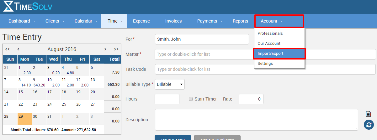 To backup your data with TimeSolv, simply click on Import/Export link under the Account tab.