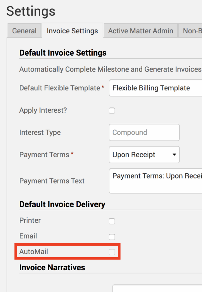 This AutoMaill feature is often overlooked, yet it’s staring at you each time you’re drafting and sending out invoices. You could say it’s hidden in plain sight. This is definitely a feature many firms who still mail their invoices will want to take advantage of.