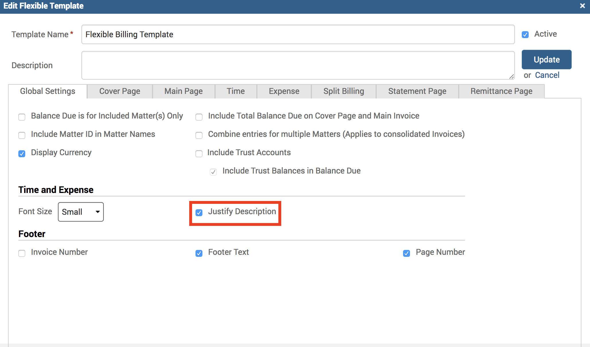 Users can now easily edit the invoice font size, and choose to align Time Entry description text as left aligned or justified in the invoices.