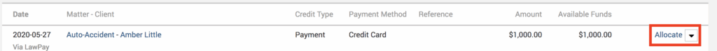 The funds will not be automatically allocated. You will have to allocate the funds by using the bottom half of the Payments>Payments screen. Search for ‘Allocatable‘ from the Status field. There should be an ‘Allocate‘ link next to your card/account payment. Click to Allocate.