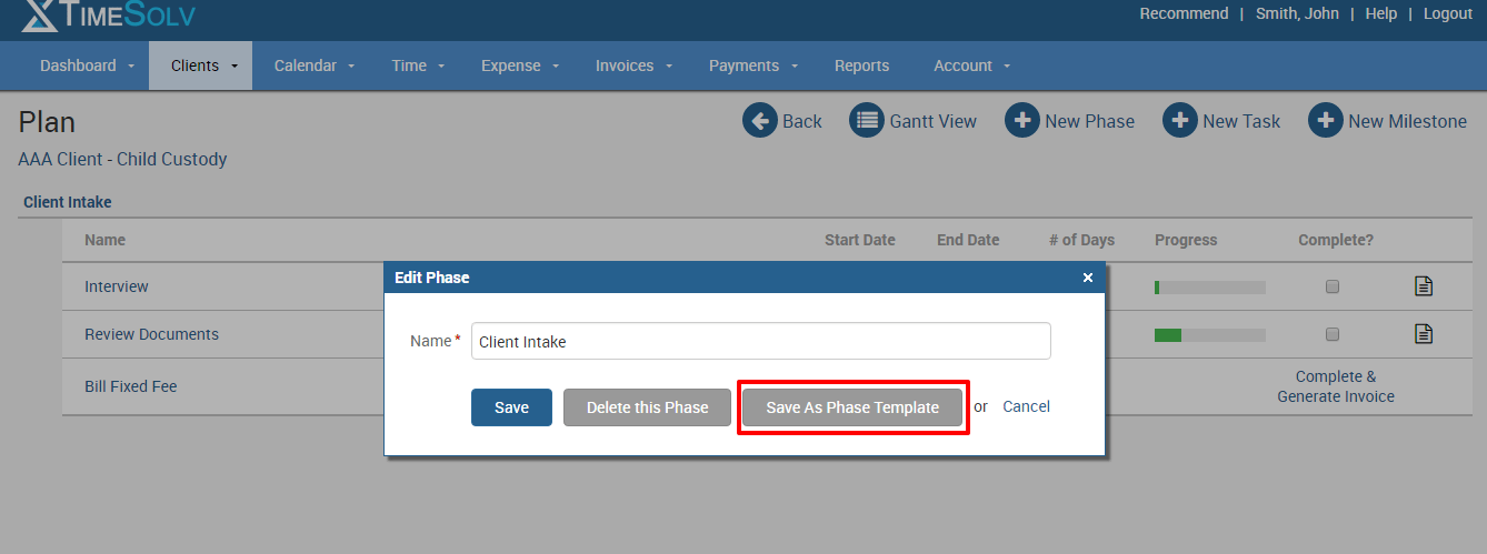 To save a phase as a template for future use, just click on the phase name and you’ll see the option of “Save As Phase Template”. It’s that easy! Then when you go to create a new phase, you’ll see an option to choose from your templates.